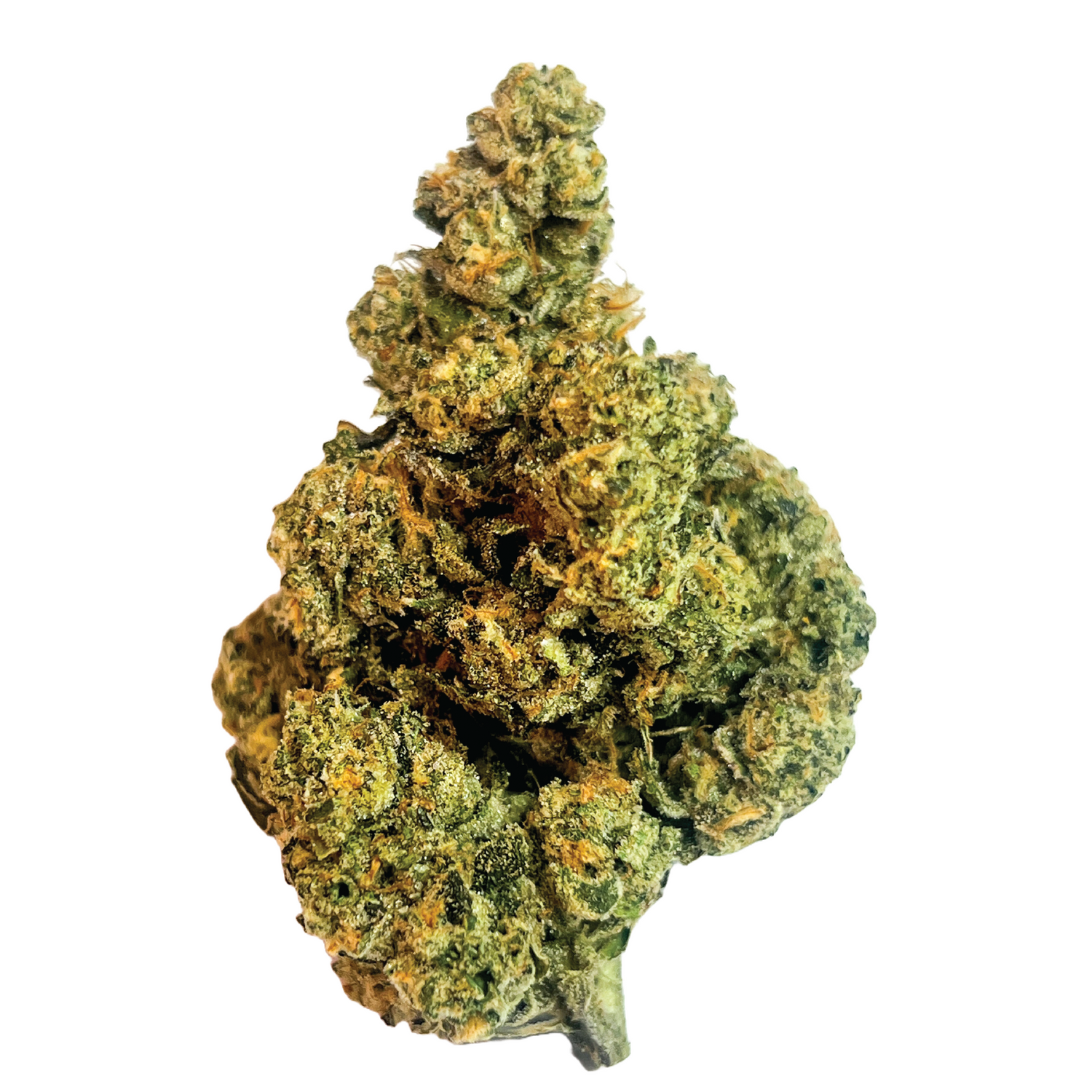 Rich, savory, earthy gas with the grind releasing a diesel-soaked oil rag aroma with notes of lemon menthol on the dry pull. All gasoline on the exhale. Large, dense, sticky buds are olive green with a traditional bud structure. Trust us, you might want to save this gal for the nighttime or lazy days.